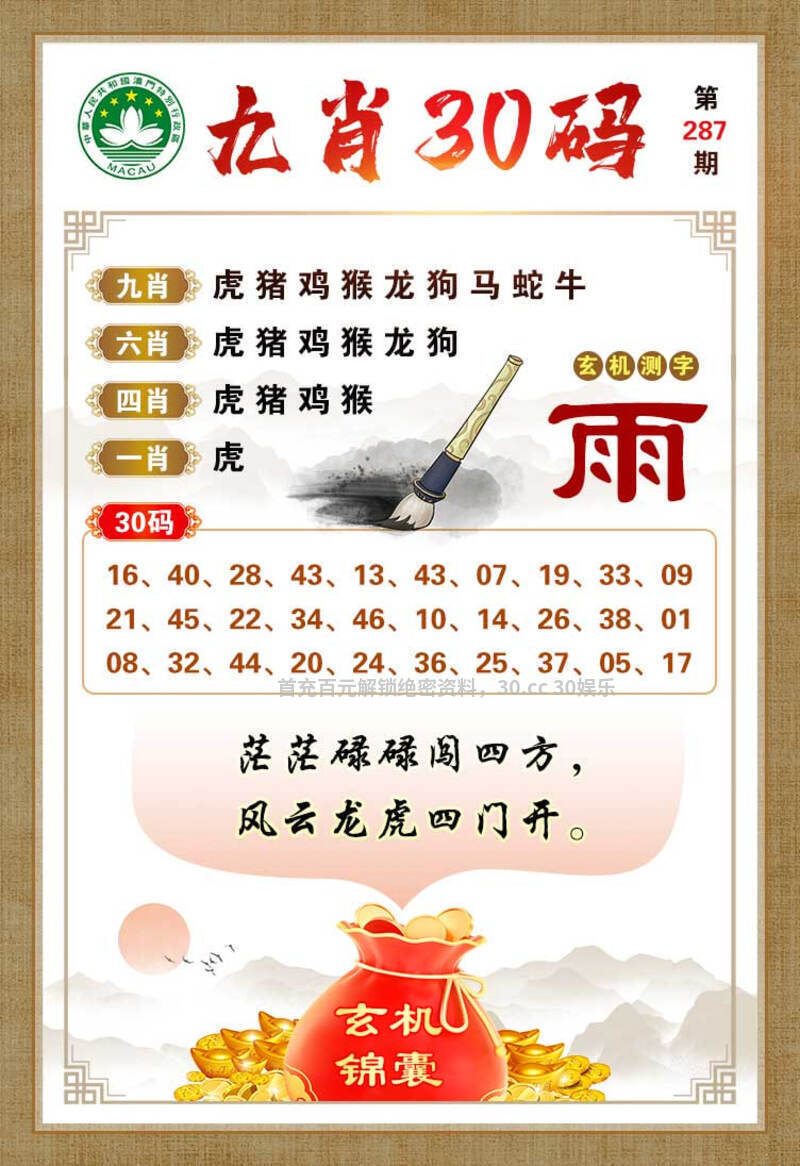 287期绝杀《猴狗虎》开:猴34
